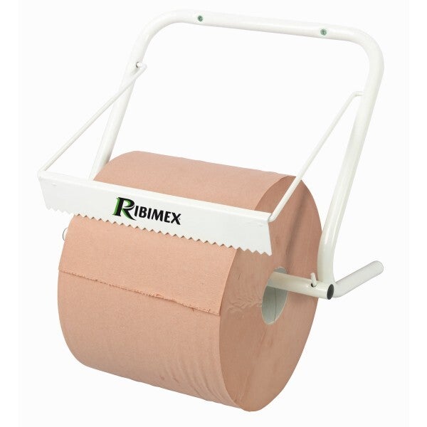 Dévidoir papier en acier blanc pour toute bobine d’essuyage 30cm max.